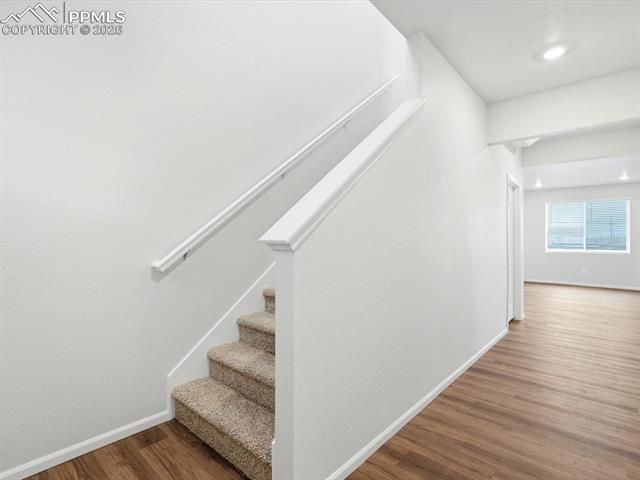 Full Whirlpool appliance package, and full home blinds included for move-in convenience! Open concept kitchen with quartz countertops and slate cabinets! Rear landscape and fencing included! Welcome to the Red Rock — a spacious two-story home with over 2,000 sq. ft. of open-concept living. The main level offers a seamless flow between kitchen, dining, and living areas, plus a convenient half bath for guests. Upstairs, enjoy a versatile loft, three bedrooms, and a luxurious primary suite with walk-in closet and private bath. Complete with a two-bay garage, this home is designed for modern comfort and entertaining. The Meritage Home difference includes spray-foam insulation, advanced air filtration for year-round comfort and healthier air, and durable cementitious siding known for its strength, fire-resistance, and long-lasting performance. Welcome home where every detail is built for comfort, efficiency, and LIFE. BUILT. BETTER. Lorson Ranch in Colorado Springs offers easy access to nearby military bases and everyday conveniences. With scenic Pikes Peak views, nearby parks, trails, and lakes, residents enjoy a suburban setting close to schools, shopping, and outdoor recreation.