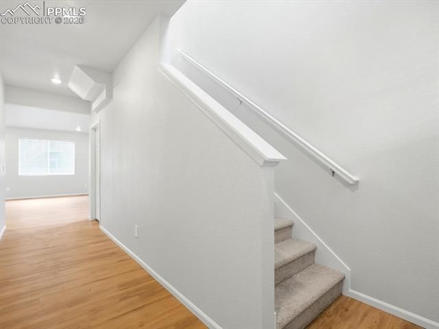 Full Whirlpool appliance package, and full home blinds included for move-in convenience! Rear landscape and fencing included! Open concept kitchen with granite countertops and white cabinets! Welcome to the Red Rock — a spacious two-story home with over 2,000 sq. ft. of open-concept living. The main level offers a seamless flow between kitchen, dining, and living areas, plus a convenient half bath for guests. Upstairs, enjoy a versatile loft, three bedrooms, and a luxurious primary suite with walk-in closet and private bath. Complete with a two-bay garage, this home is designed for modern comfort and entertaining. The Meritage Home difference includes spray-foam insulation, advanced air filtration for year-round comfort and healthier air, and durable cementitious siding known for its strength, fire-resistance, and long-lasting performance. Welcome home where every detail is built for comfort, efficiency, and LIFE. BUILT. BETTER. Lorson Ranch in Colorado Springs offers easy access to nearby military bases and everyday conveniences. With scenic Pikes Peak views, nearby parks, trails, and lakes, residents enjoy a suburban setting close to schools, shopping, and outdoor recreation.