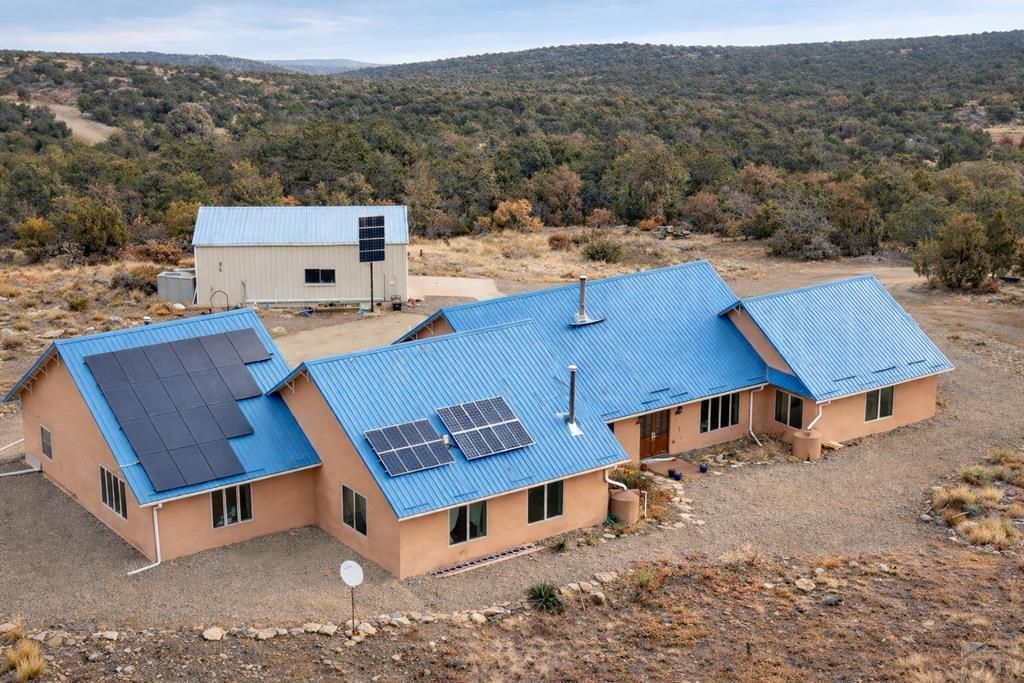 This custom off-grid home is the ultimate escape from the chaos of big city living. Embrace your dream of independent, self-reliant, green living by owning 70 acres of land perfect for homesteading without covenants or an HOA. This impressive property is run on propane and a NEW state of the art solar system. This spacious 4,800 sq. ft home has an open floor plan perfect for entertaining. There are vaulted ceilings in the kitchen, dining room, and living room. The two large bedrooms each have an ensuite bath and the main bedroom has a large walk-in closet. The home is straw-bale built, radiant heat finished floors (each room with its own thermostat), 2 fireplaces, a working well, and a 1700 gallon buried cistern. In addition to the home there is a detached 30X40 workshop with its own solar power system.