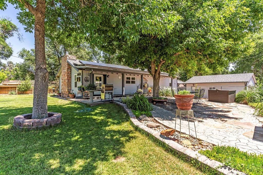 Move-in ready, well-maintained 4-bed, 2.5-bath home on 2.06 acres with 2,256 sq ft of finished living space, ideal for a hobby homestead. Located on a quiet street, this cared-for property offers convenient main-floor living, a cozy gas fireplace, and paid-off solar panels serving the home, keeping electric costs exceptionally low. Two furnaces provide zoned heating for year-round comfort. The primary bedroom features a private walk-out with beautiful sunrise views of the back propertyâ??perfect for enjoying morning coffee under the gazebo. The walk-out basement includes a family room, three bedrooms, and a full bath. The property includes 12 shares of DeWeese Ditch water, a holding pond to support irrigation, and convenient outdoor spigots for animal and yard water. Enjoy a large covered patio, fenced acreage, three sheds, a two-car garage, plus a one-car garage or shop. Class 4 storm-rated roofing installed on the home and all outbuildings in 2024. Zoned for horses, goats, and chickens.