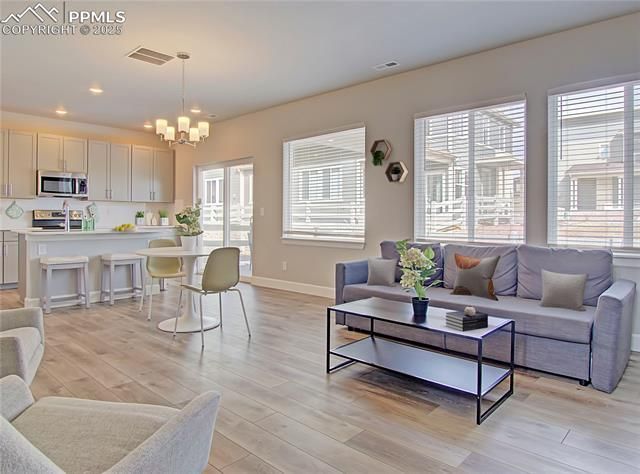 Welcome to the Poplar floor plan—designed with modern living in mind and ideally located in the highly desirable Wolf Ranch community. This 2-bedroom + loft, 2.5 bath townhome offers an open-concept layout with a spacious great room that flows seamlessly from the kitchen, creating an inviting main level. The kitchen features a center island, pantry, stainless steel appliances, quartz countertops, and durable LVP flooring—perfect for everyday living and entertaining. Upstairs, the versatile loft offers flexible space for a home office, media room, or play area (the loft can also be an optional 3rd bedroom). The private primary suite offers a large walk-in closet and en-suite bath with dual sinks, quartz counters, and a stand-alone shower with tile surround. A secondary bedroom, full bathroom, and laundry room complete the upper level. Situated in one of Colorado Springs’ most sought-after neighborhoods, this home offers easy access to parks, trails, Wolf Lake, and top-rated District 20 schools—all just minutes from dining, shopping, and commuter routes. There is still plenty of time to choose interior finishes and personalize this home!
